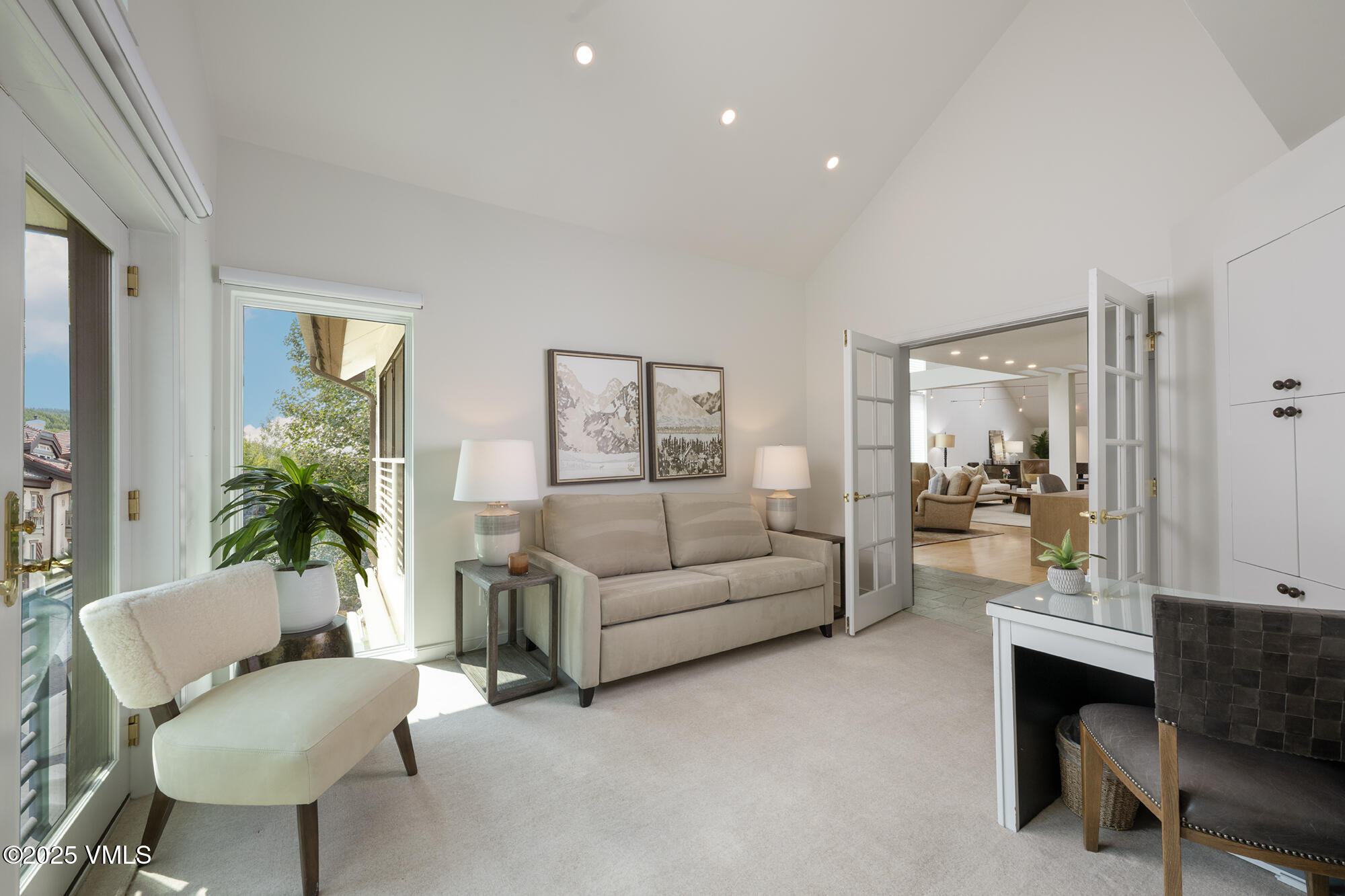 Perfectly situated in the heart of Vail Village, this residence offers over 4,300 square feet of living space with sprawling southern views of Vail Mountain. The expansive 5-bedroom floor plan offers a large open concept main level, abundant natural light, high vaulted ceilings, multiple living areas, and floor-to-ceiling windows with sweeping ski slope and Village views. A versatile office with an adjacent full bath offers the option of a fifth bedroom, while another ensuite bedroom completes the main level. Upstairs, a lofted lounge overlooks the great room, creating a cozy retreat for reading or movie nights. The upper level features three additional bedrooms, including a secluded primary suite with vaulted ceilings, a private balcony, and a serene bath featuring dual vanities and soaking tub. Enjoy the use of pool and hot tubs at the neighboring Sebastian property, fitness facility, and two deeded parking spaces. This residence epitomizes privacy and convenience, combined with luxury mountain living just moments from skiing and all the dining, shopping and entertainment Vail Village has to offer.