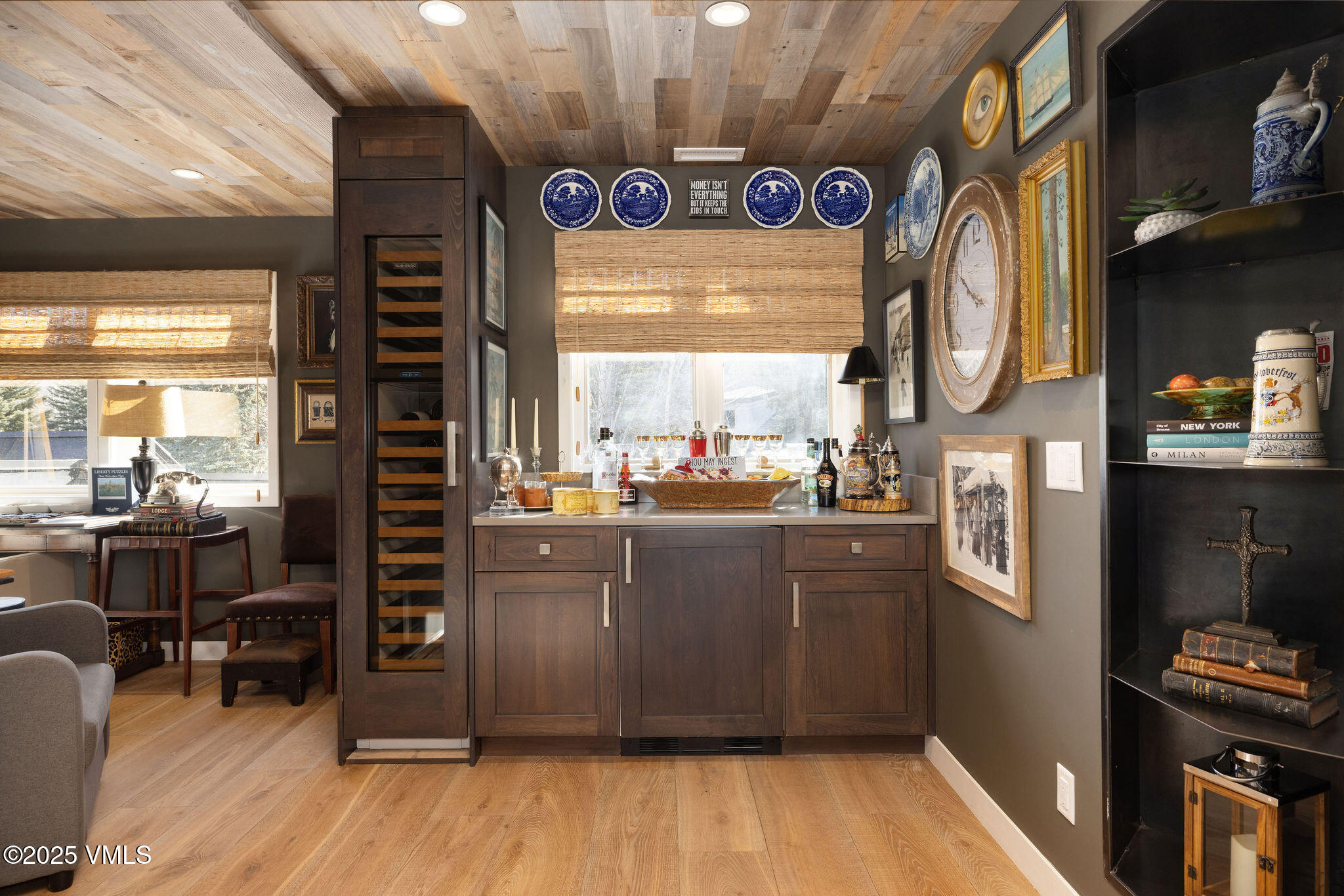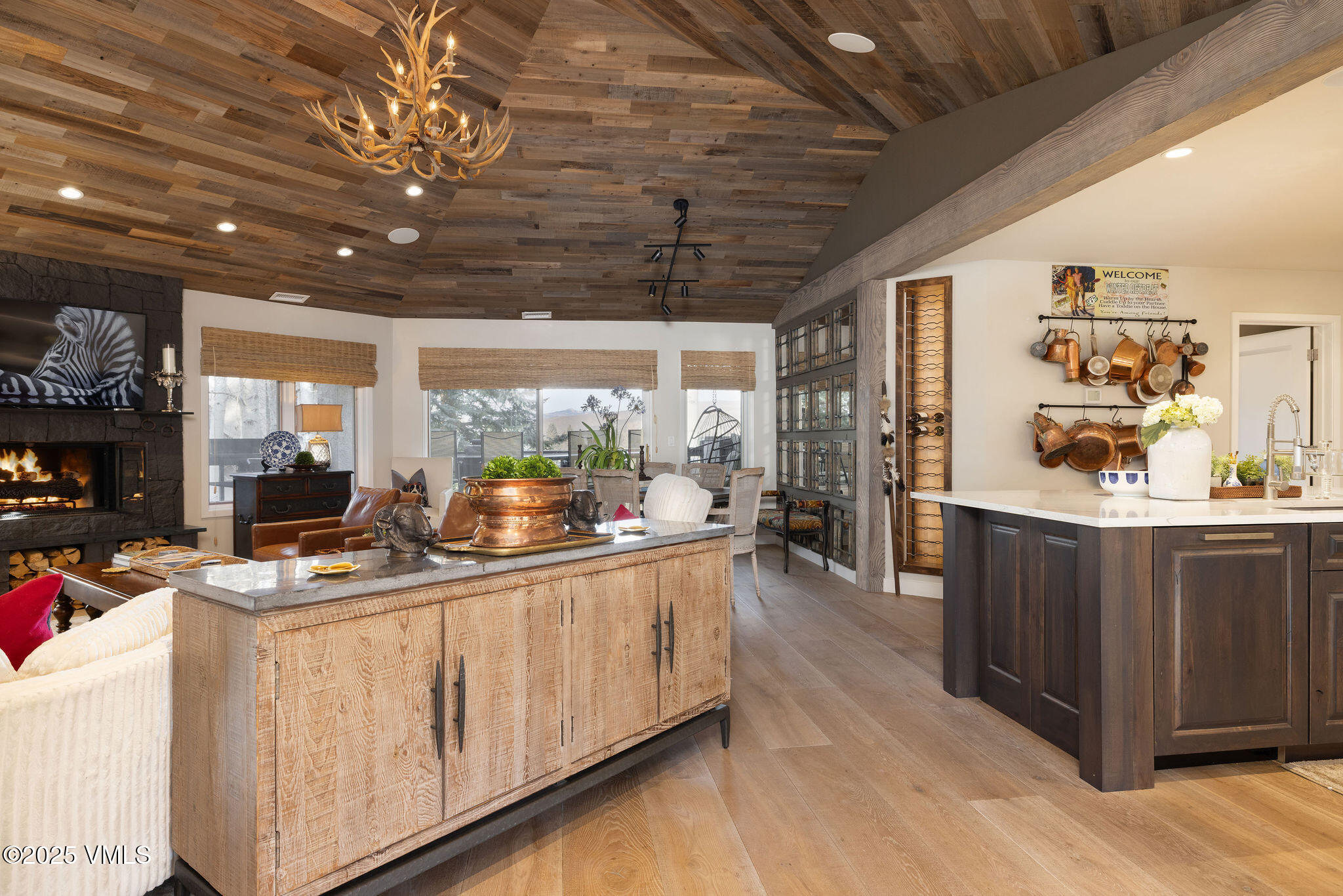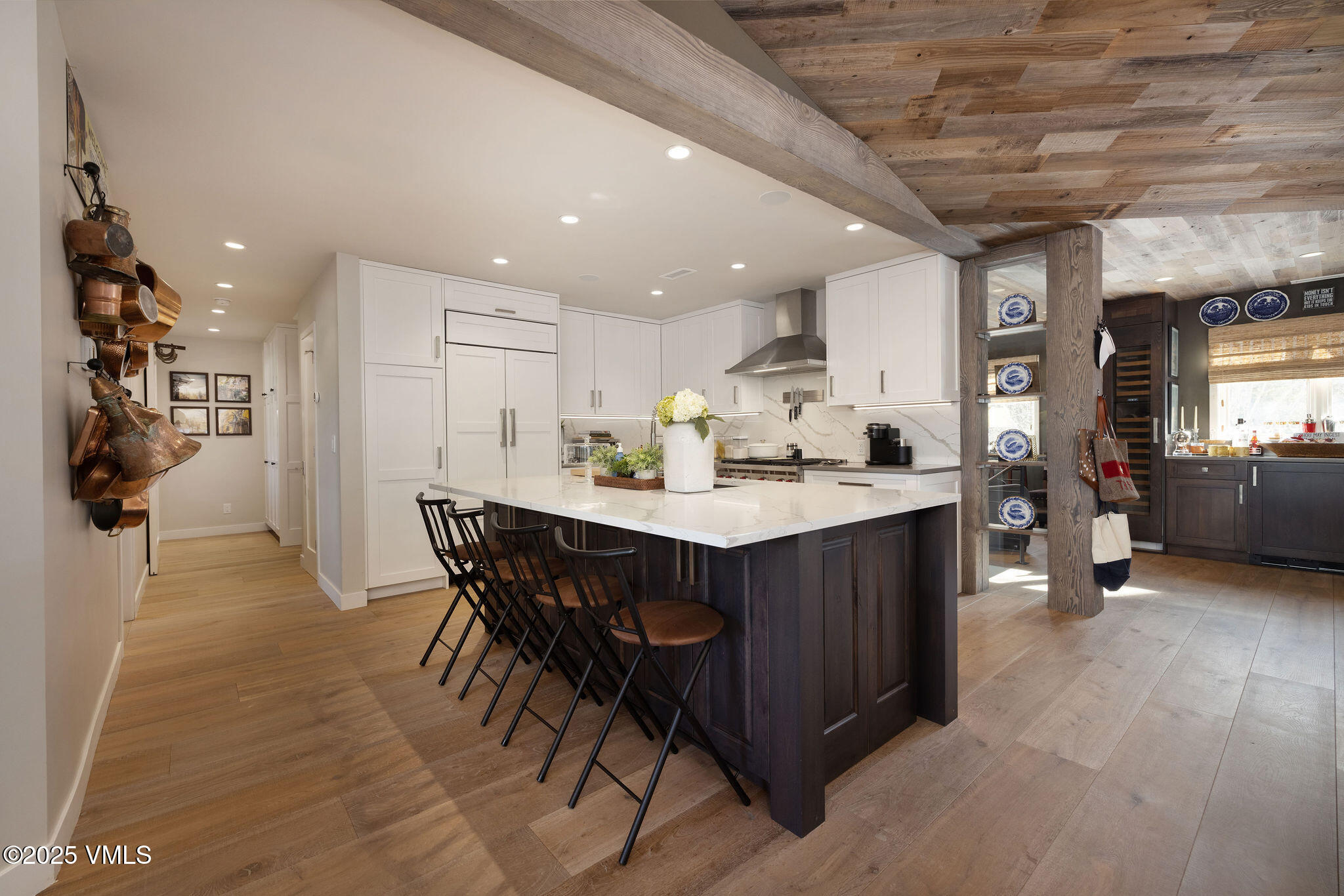 No detail has been overlooked in the home's exquisite reimagining. The main living level has been artfully expanded to create a grand yet inviting environment, where custom wood-paneled ceilings, sophisticated finishes, and thoughtfully curated spaces come together in perfect harmony. A beautifully crafted cozy sitting area—complete with an integrated bar—flows seamlessly into the open-concept living room, dining area, and bespoke chef's kitchen. Here, high-end appliances, exceptional materials, and impeccable design elevate both everyday living and effortless entertaining.