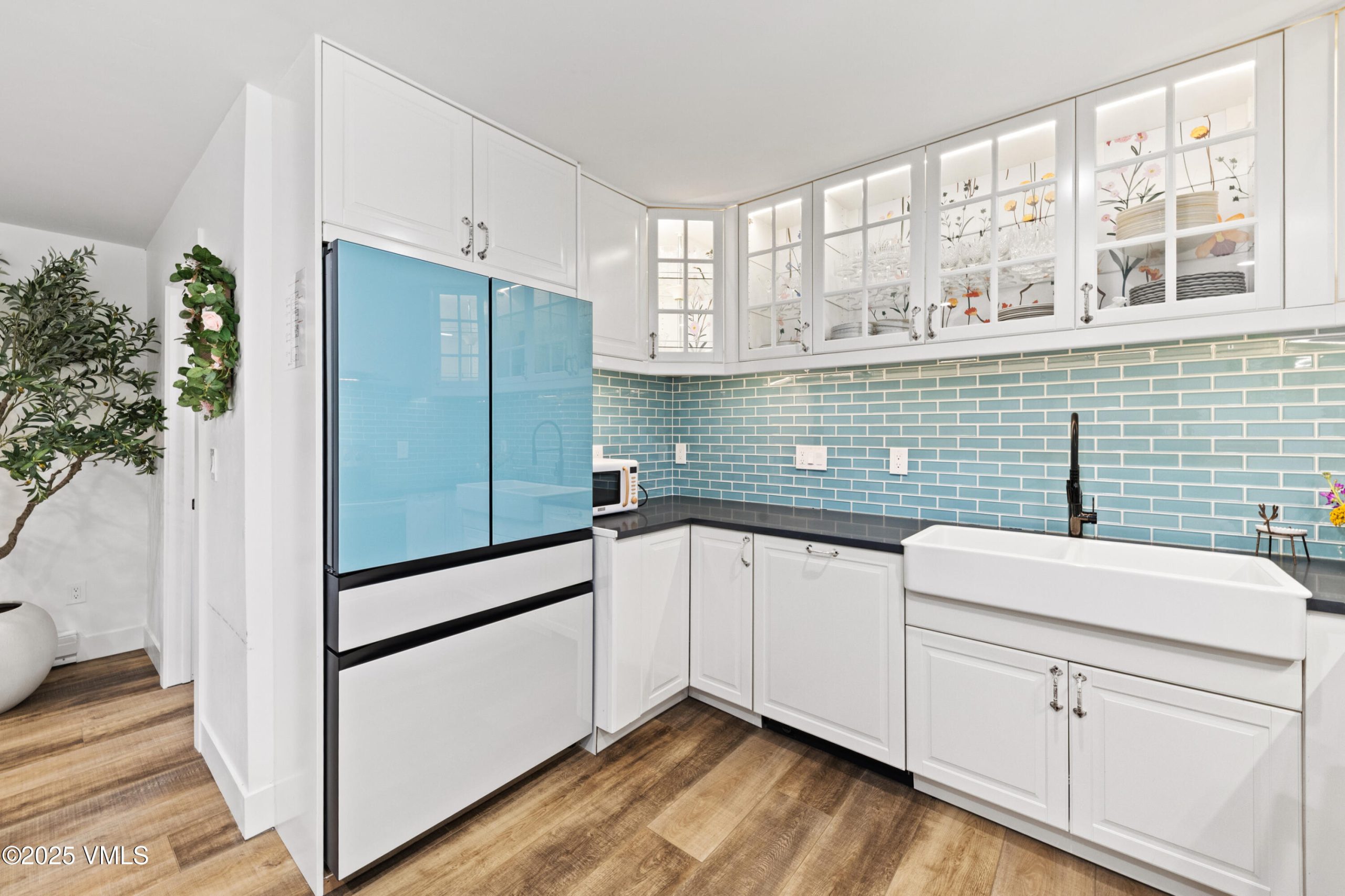 The chef-inspired kitchen is a true showpiece, featuring elegant custom finishes, warm in-drawer and under-cabinet lighting, and all-new appliances, including a dedicated wine fridge and a sleek Samsung Bespoke refrigerator. Every detail has been elevated, from the new doors and windows to the luxury vinyl flooring by Creative Floors.