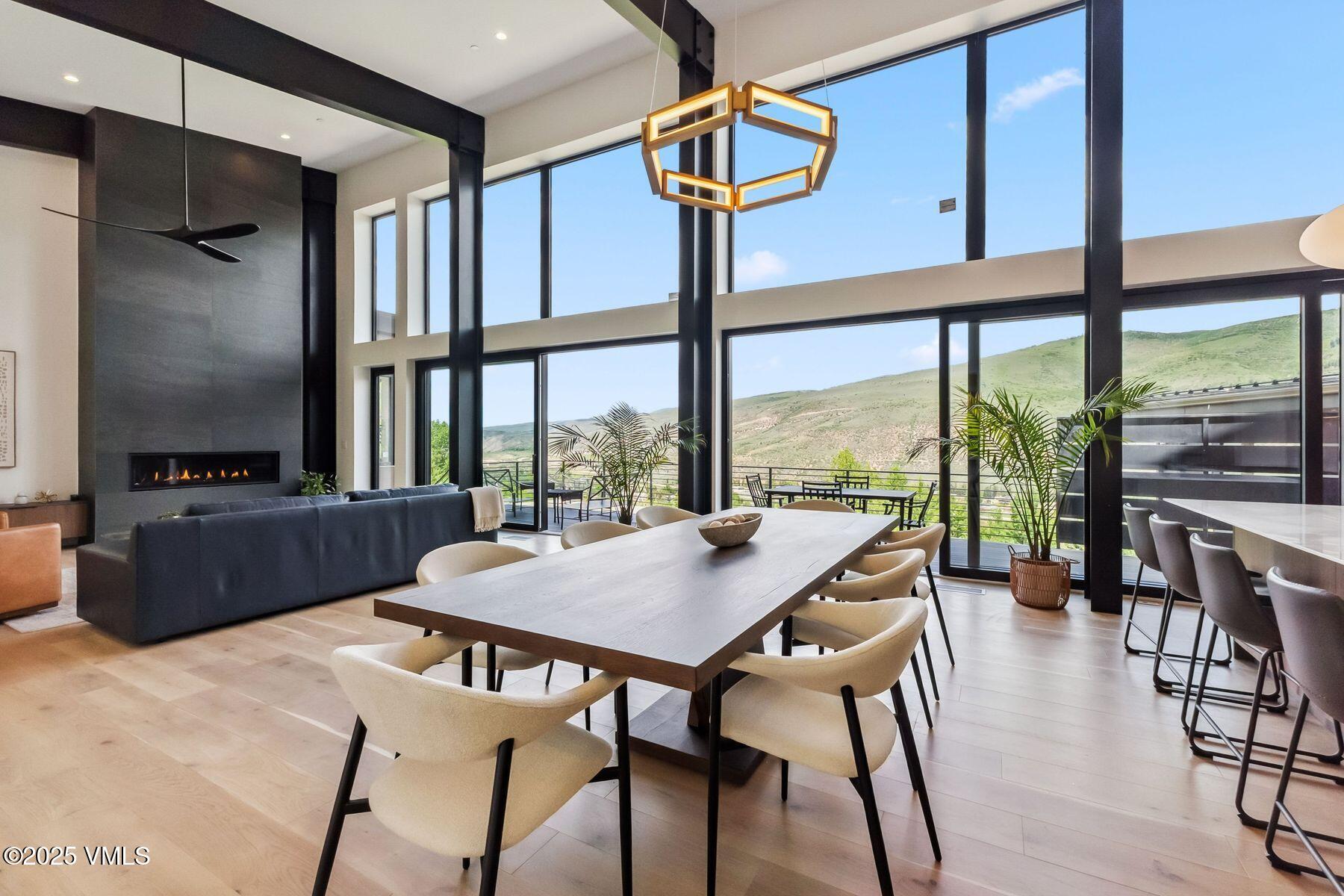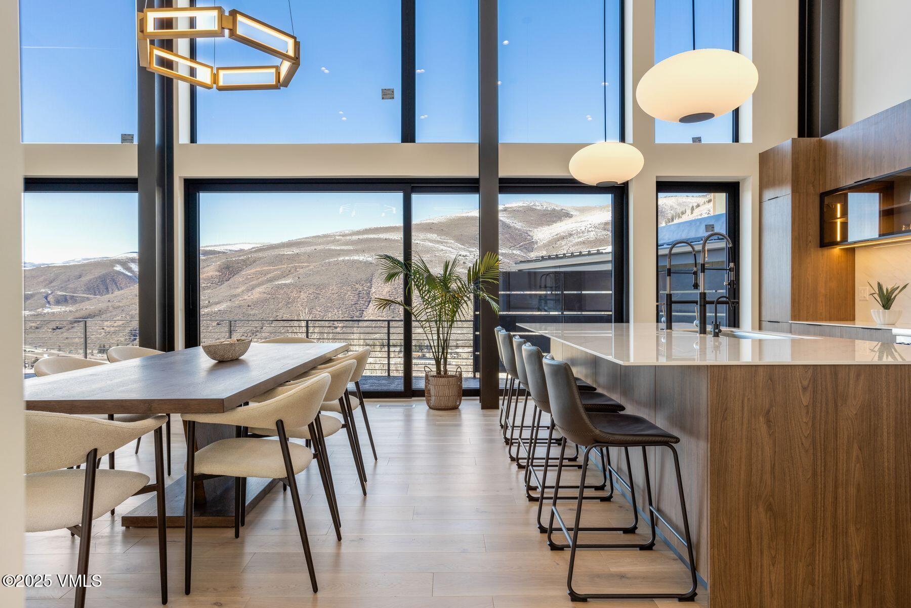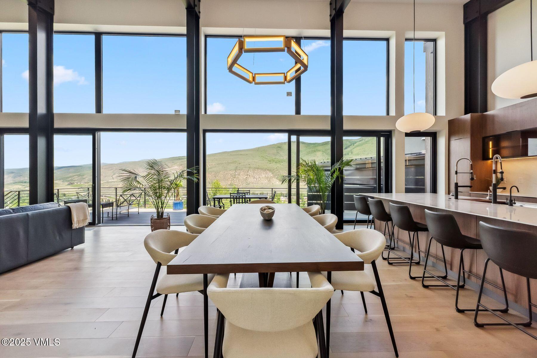 The chef's kitchen, designed for both intimate gatherings and grand entertaining, boasts stainless steel Thermador appliances, soft-close cabinets, porcelain countertops, and a custom porcelain range hood. Flowing naturally from the kitchen, the grand room extends through the dining area into the sitting area, creating a seamless open-concept layout ideal for relaxed evenings and lively celebrations. At its heart, a floor-to-ceiling custom porcelain-tiled fireplace serves as a stunning focal point. The primary suite is a private retreat, featuring spa-like en-suite bath with a freestanding soaking tub, radiant heated floors, and an oversized shower. A custom walk-in closet and a second stacked washer and dryer enhance convenience. The lower level extends the home's livability with a second living area, wet bar, oversized laundry room, and four bedrooms, two with en-suite baths. The deck is also hottub ready, perfect for apres. A highlight of this home is the 830-square-foot heated garage, accommodating four cars in tandem, with an EV charger and dog-washing station. Designed for sustainability, the roof is also solar-ready. Located minutes from Vail and Beaver Creek Resorts, enjoy year round EagleVail amenities: miles of trails, golf, pickleball, parks, gardens, and more.