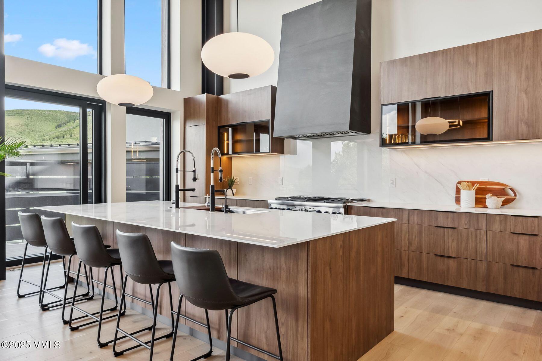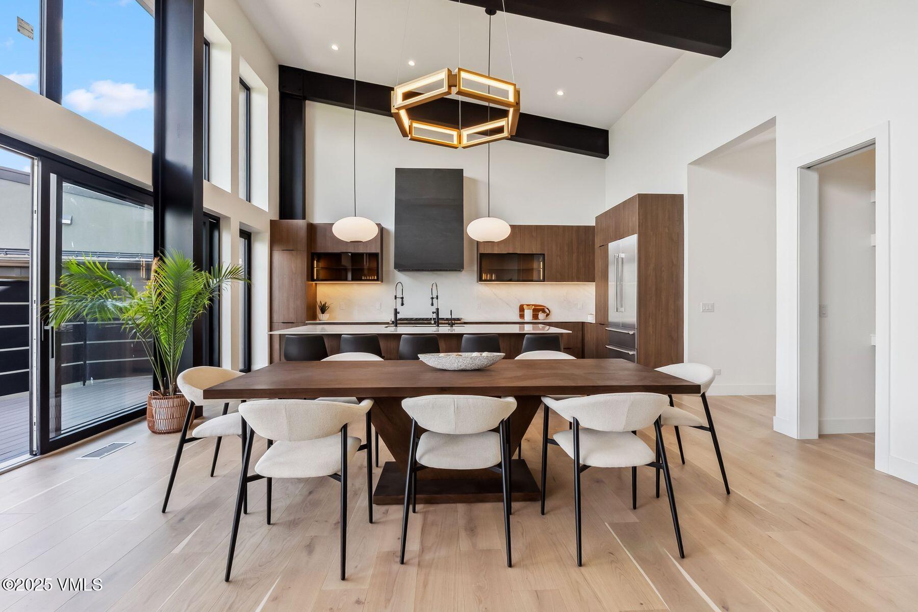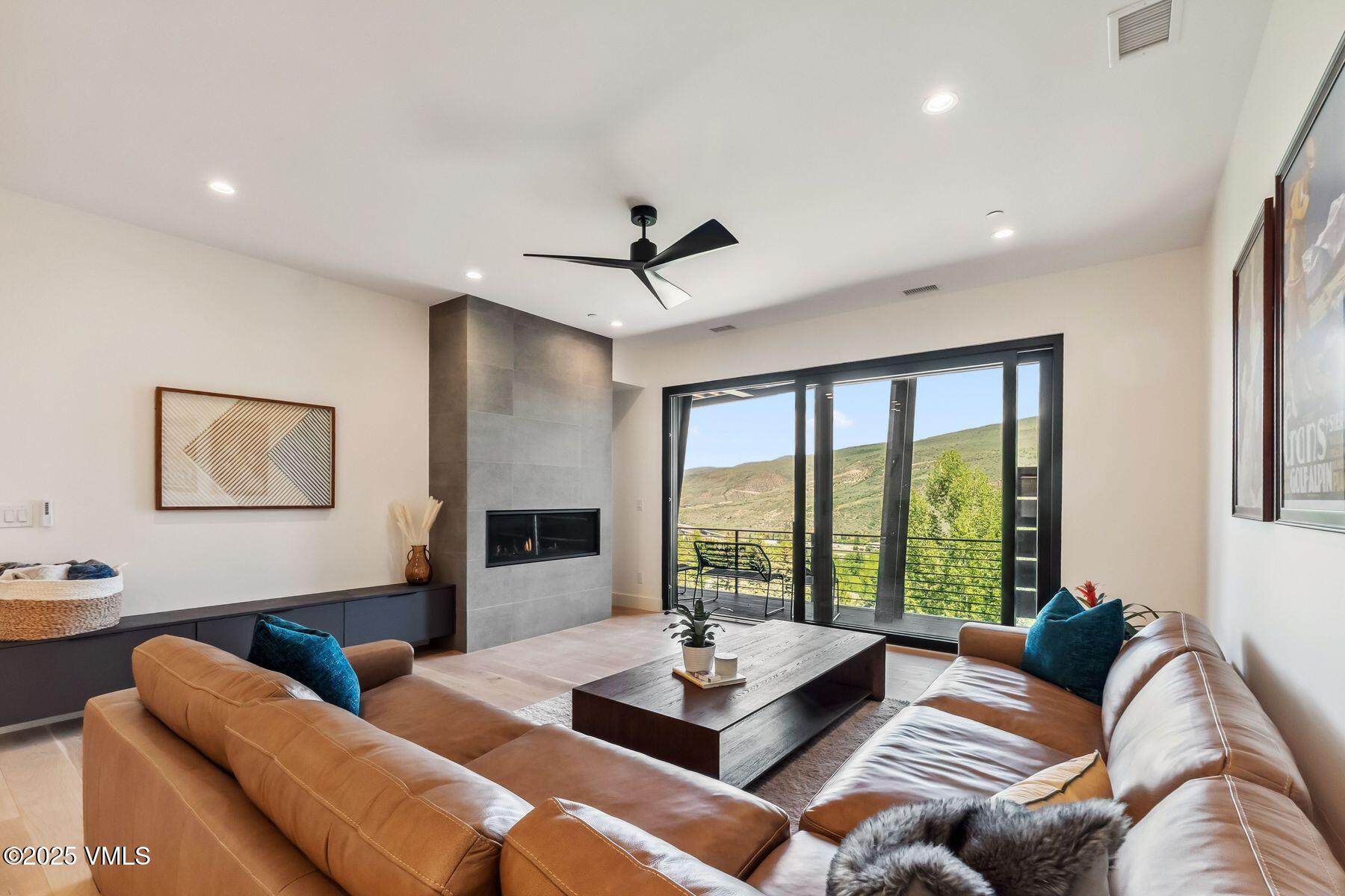 The chef's kitchen, designed for both intimate gatherings and grand entertaining, boasts stainless steel Thermador appliances, soft-close cabinets, porcelain countertops, and a custom porcelain range hood. Flowing naturally from the kitchen, the grand room extends through the dining area into the sitting area, creating a seamless open-concept layout ideal for relaxed evenings and lively celebrations. At its heart, a floor-to-ceiling custom porcelain-tiled fireplace serves as a stunning focal point. The primary suite is a private retreat, featuring spa-like en-suite bath with a freestanding soaking tub, radiant heated floors, and an oversized shower. A custom walk-in closet and a second stacked washer and dryer enhance convenience. The lower level extends the home's livability with a second living area, wet bar, oversized laundry room, and four bedrooms, two with en-suite baths. The deck is also hottub ready, perfect for apres. A highlight of this home is the 830-square-foot heated garage, accommodating four cars in tandem, with an EV charger and dog-washing station. Designed for sustainability, the roof is also solar-ready. Located minutes from Vail and Beaver Creek Resorts, enjoy year round EagleVail amenities: miles of trails, golf, pickleball, parks, gardens, and more.