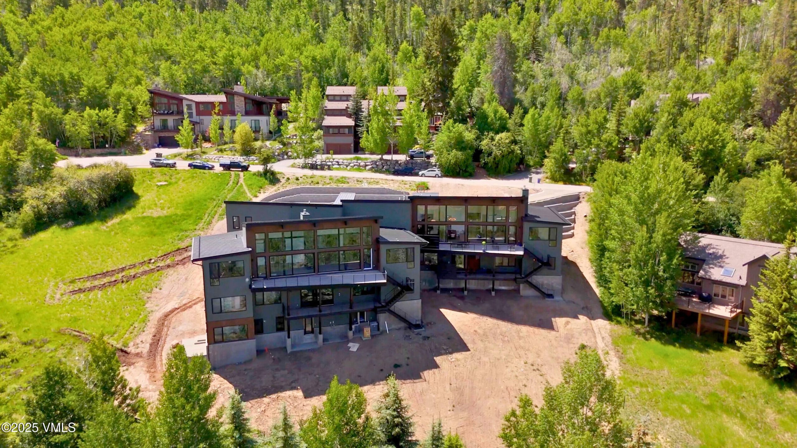 New construction perched atop Whiskey Hill in the coveted EagleVail community, 824 Eagle Drive Circle West is a stunning testament to modern mountain living, where efficiency meets unrivaled craftsmanship. HOME IS TURNKEY - BEING SOLD FURNISHED. A heated driveway ensures year-round access, effortlessly melting away winter's challenges. Inside, the grand room impresses with 18' ceilings and standing seam metal-wrapped beams, creating a space that's both dramatic and inviting. An Expansive wall of sliding doors open to unobstructed northern mountain views.