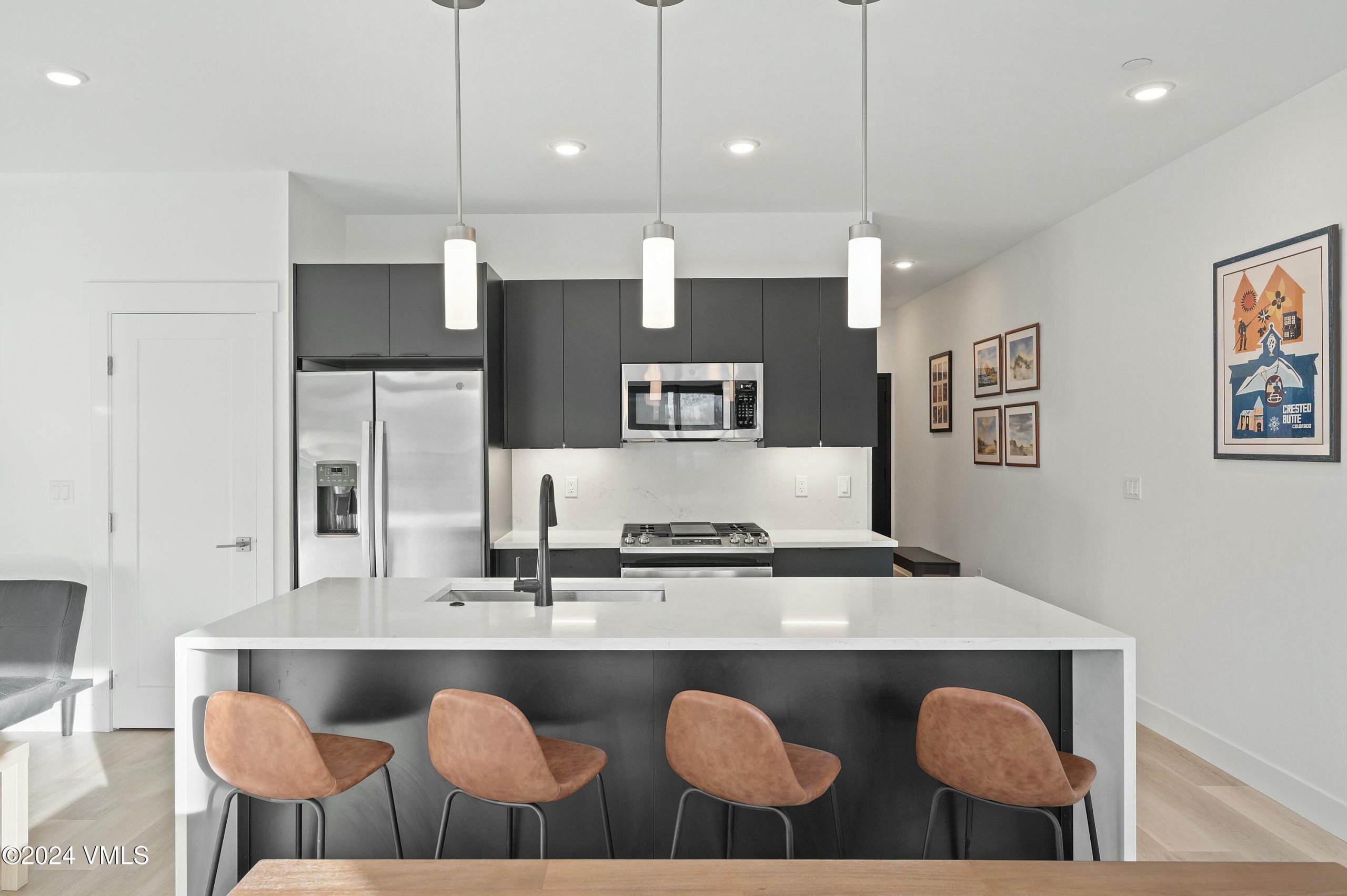 SELLER MOTIVATED! Step into this beautiful and modern, 2 bedroom and 2 bathroom condo located on the Blue River in the new downtown Silverthorne, and highly sought after River West Condos. With very little usage since completion in 2021, this turnkey/ furnished condo feels brand new! Enjoy great views of the Gore Range out your floor to ceiling windows and walk out patio, throw a fly fishing line into the prized Blue River, and finish the day in the River West hot tub listening to the current. With shops and restaurants just steps away, you are also very close to world class skiing in Summit County, as well as Vail and Beaver Creek just 45 minutes away! Condo also comes with a rare two car, tandem, covered parking stall with additional owners storage closet. Make An Offer Today!